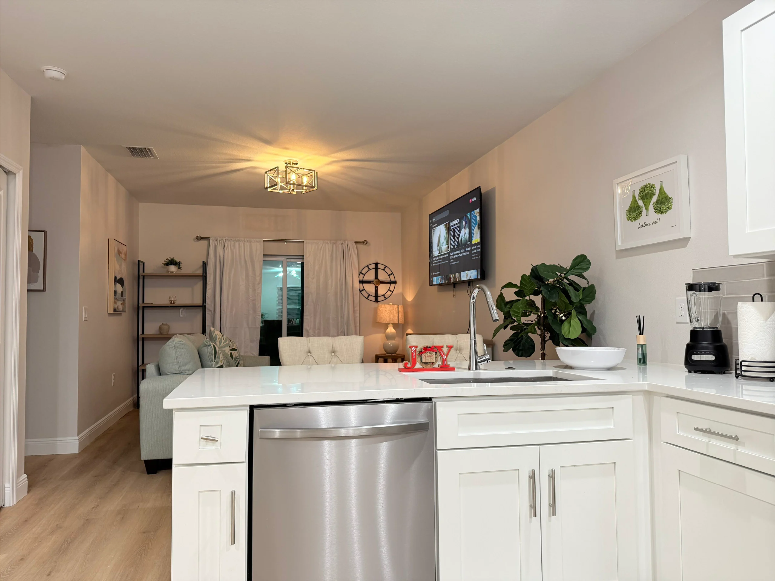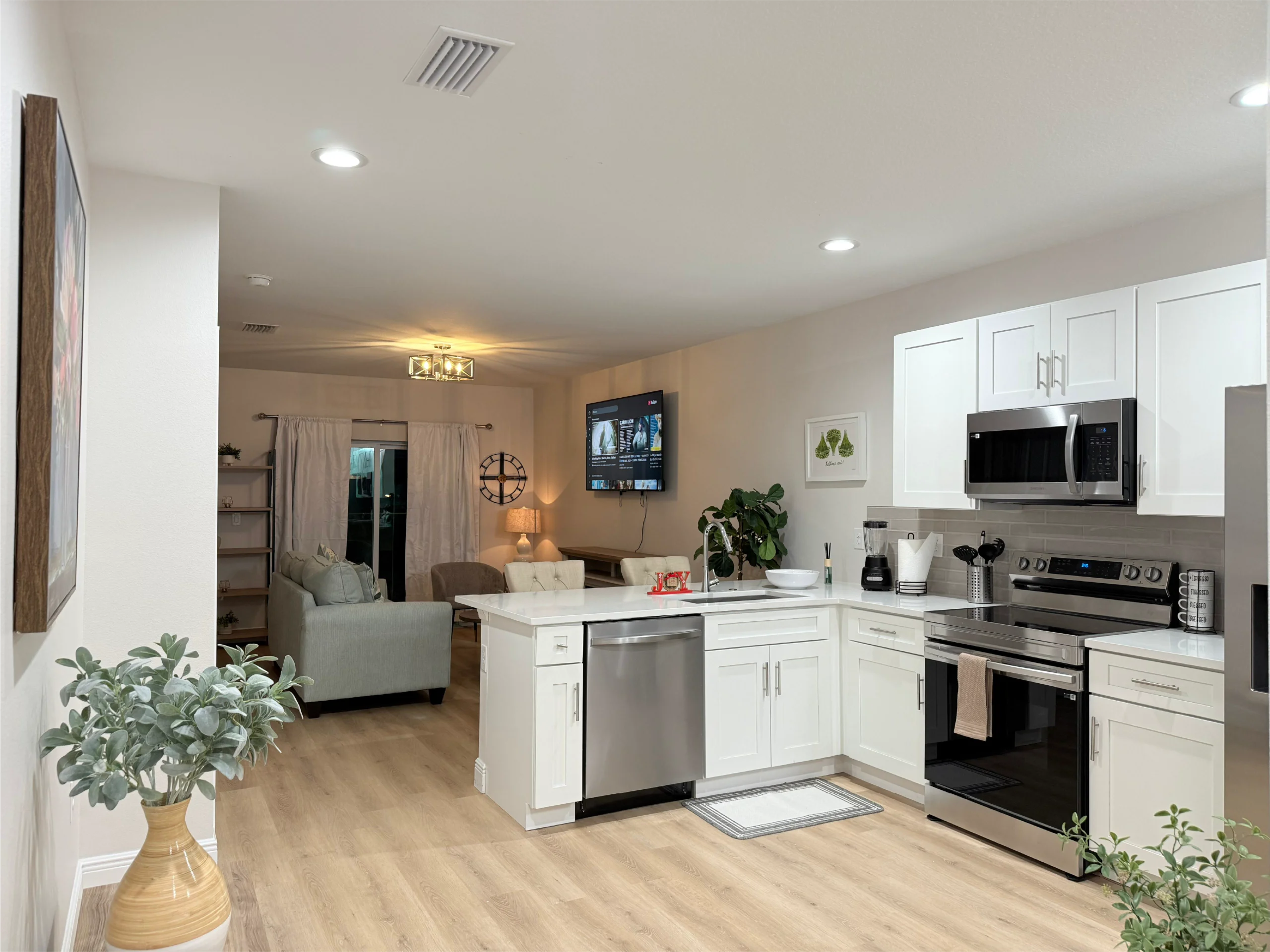 Encontrarás una cocina totalmente equipada que está lista para cualquier aventura culinaria, con electrodomésticos modernos y mucho espacio en el mostrador. También hay una cómoda lavandería a tu disposición para mayor comodidad.