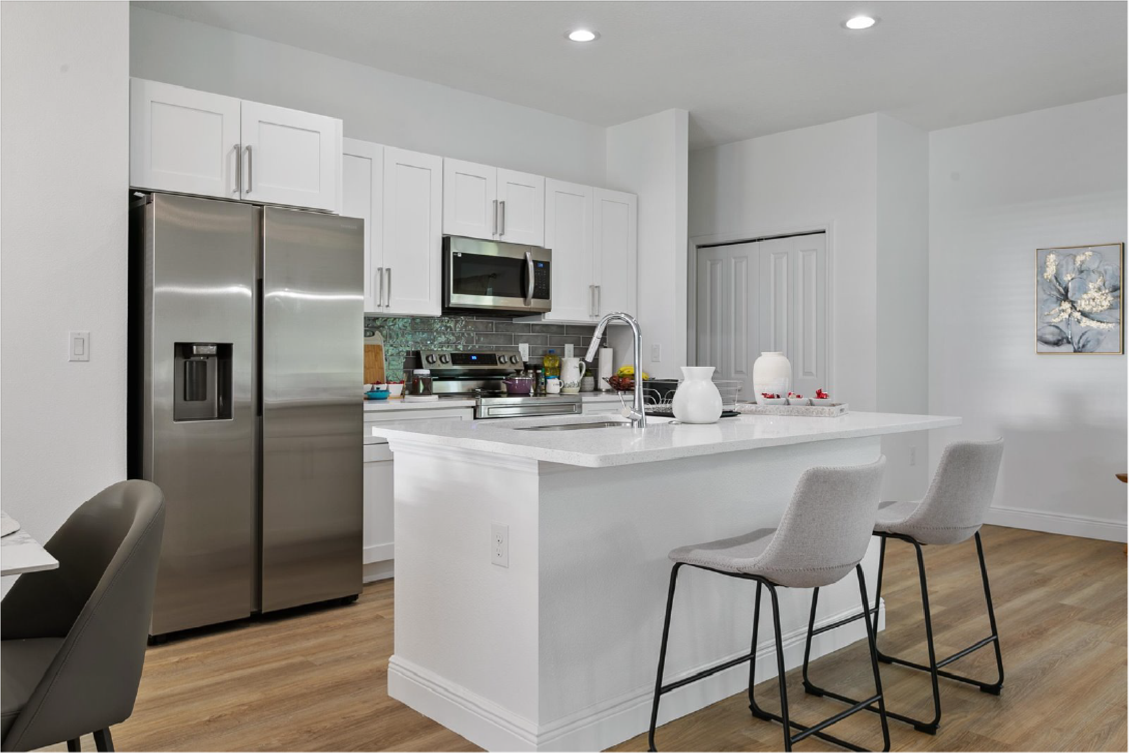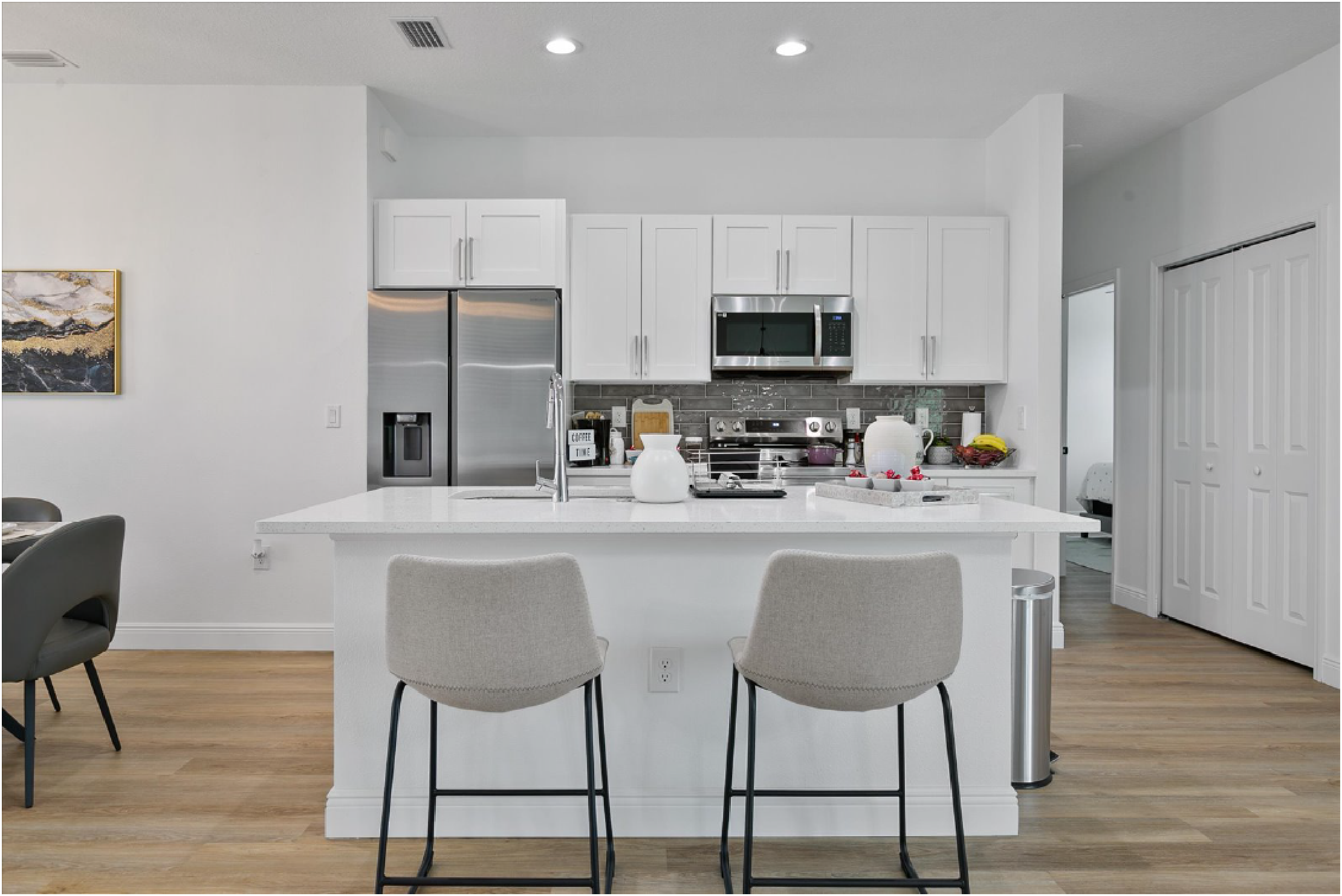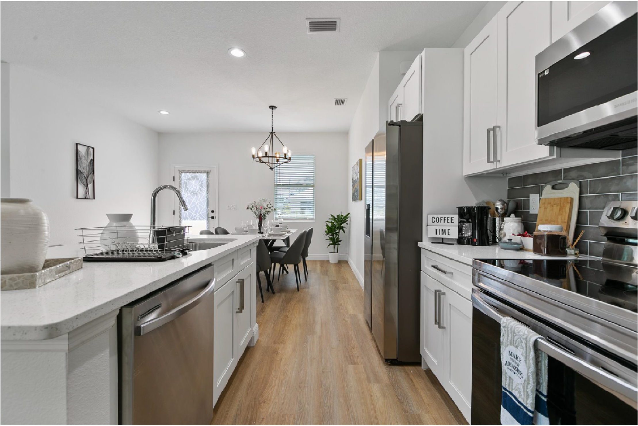 Encontrarás una cocina totalmente equipada que está lista para cualquier aventura culinaria, con electrodomésticos modernos y mucho espacio en el mostrador. También hay una cómoda lavandería a tu disposición para mayor comodidad.