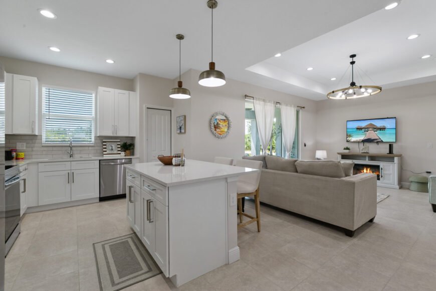 Esta fantástica propiedad tiene cuatro habitaciones acogedoras y dos baños completos, perfectos espacios para alojar a familias numerosas o grupos. La sala de estar con concepto abierto es un centro acogedor, que combina estilo y comodidad para un ambiente relajante. Encontrarás una cocina totalmente equipada que está lista para cualquier aventura culinaria, con electrodomésticos modernos espacios generosos. También hay una cómoda lavandería a tu disposición.